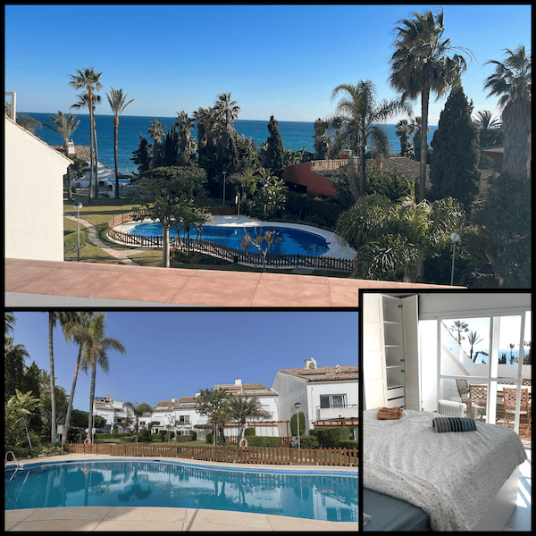 Užijte si velký třípatrový dům, který se nachází v předním plážovém komplexu Estepona Bahia Doncella. Orientace na jihozápad, klid a soukromí. Výhled